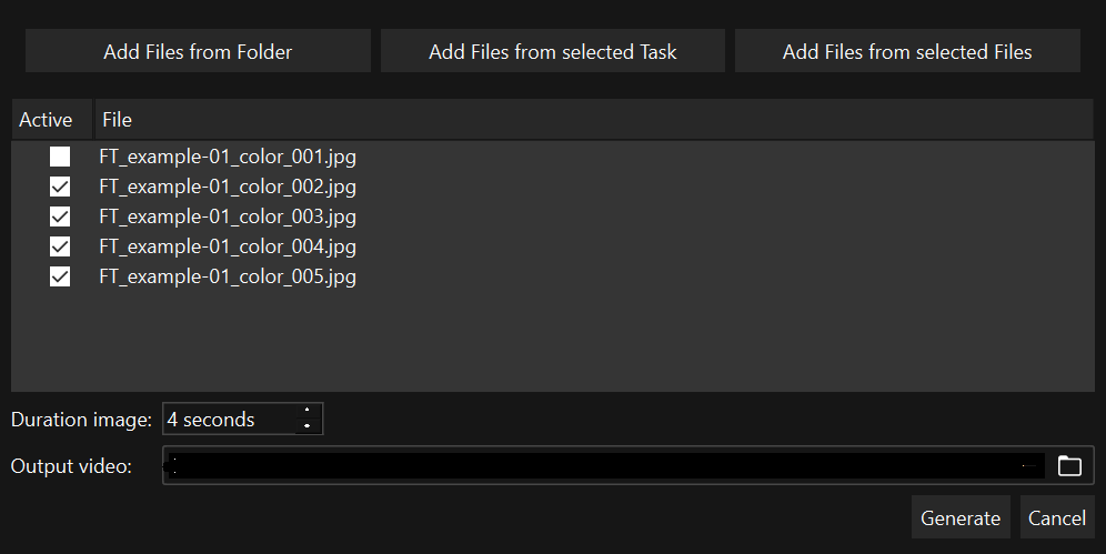 Add Files from selected Task: añade todos los archivos que contenga la tarea seleccionada en el panel de Tareas.