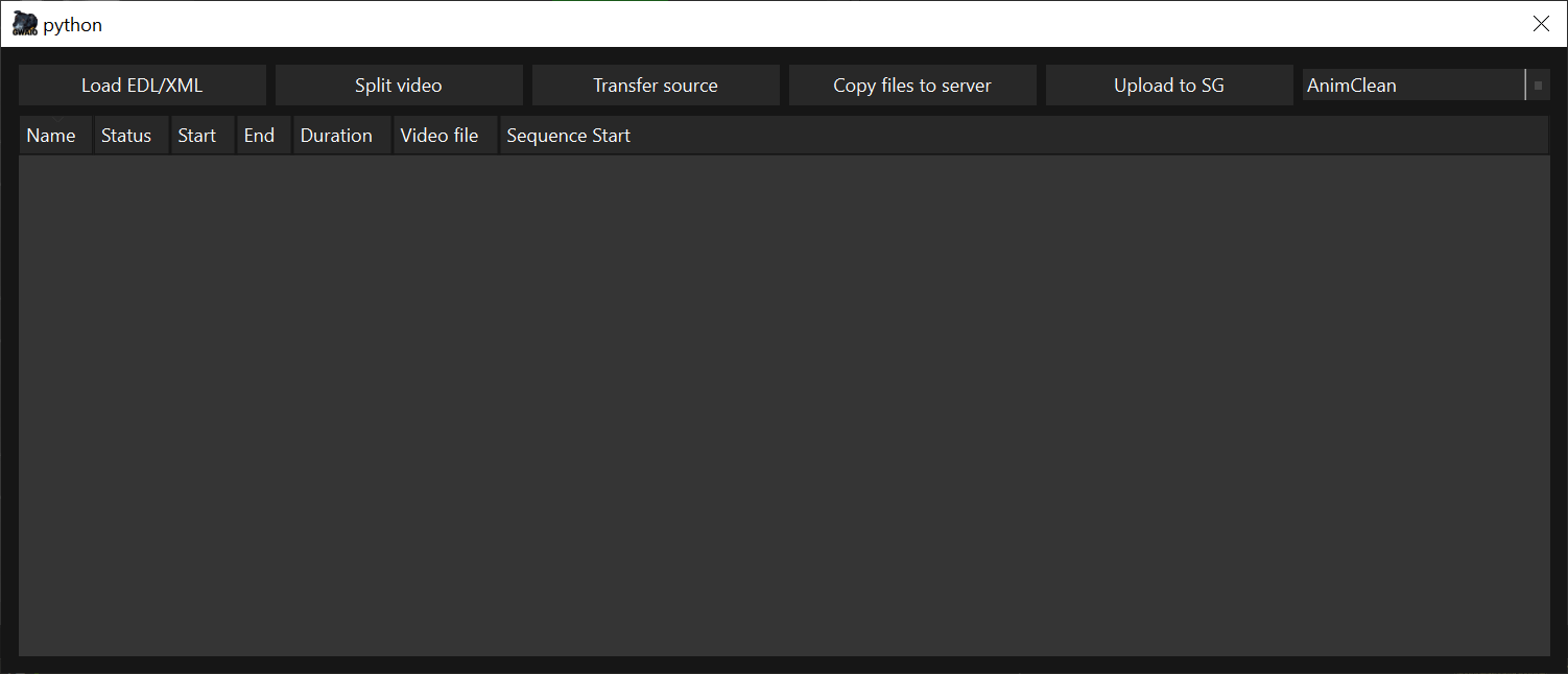 Herramienta para la creación por lotes de shots en Shotgrid dado un fichero EDL. En esta ventana nos encontraremos 5 botones.