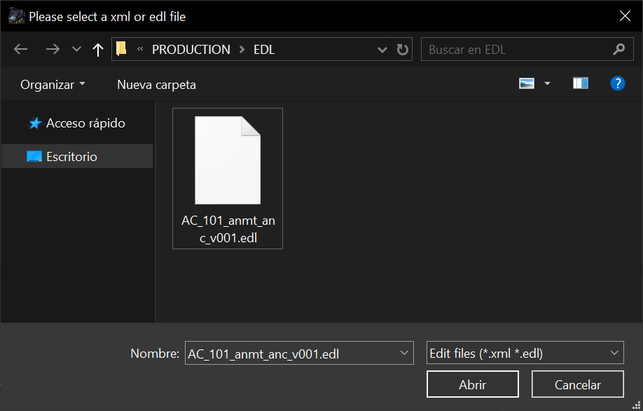 - 1.- Seleccione el archivo EDL.