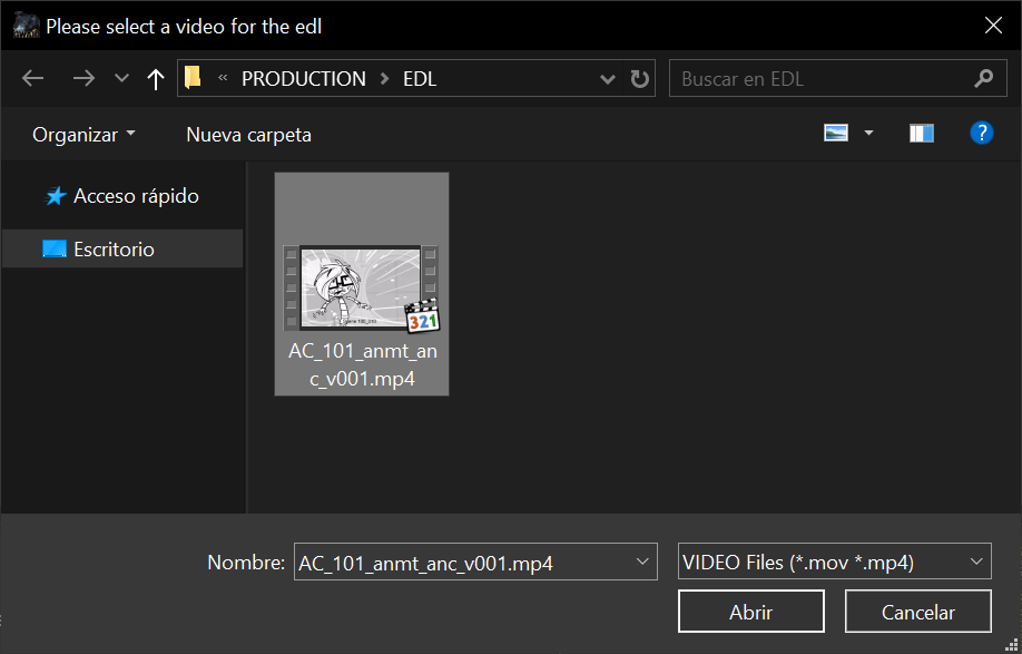 - 2.- Seleccione el archivo de video correspondiente a la EDL.