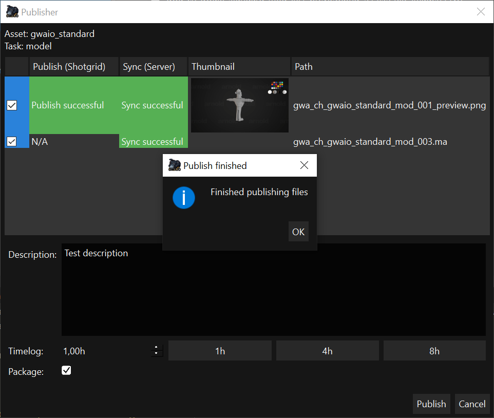 "Publish succesful" indica que el archivo ya ha sido publicado. Los archivos publicados no se pueden volver a publicar.