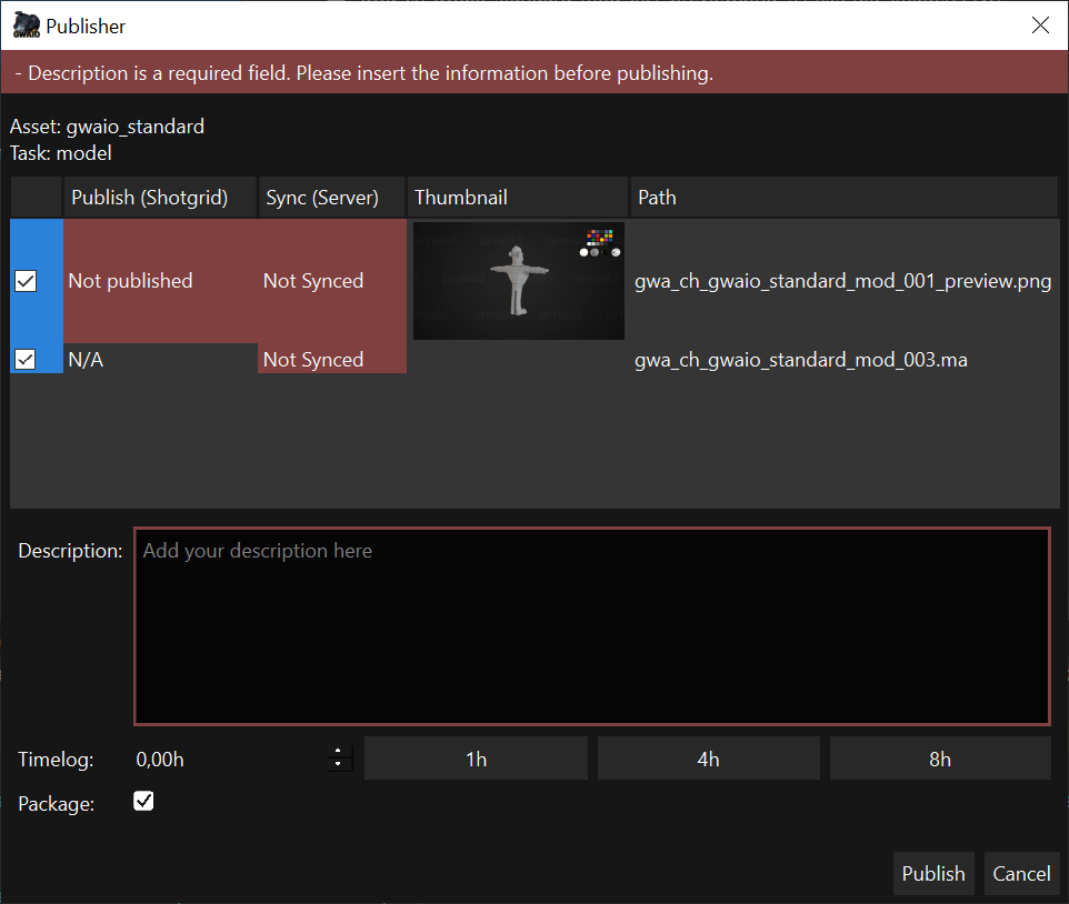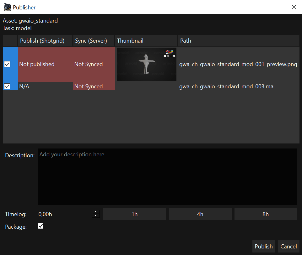 Publish: checkbox para activar o desactivar la publicación de un fichero. Si la casilla está activa, el color del campo es azul y el archivo se publicará. Si la casilla está desactivada, el color del campo es blanco y el archivo no se publicará.