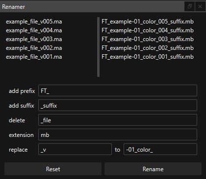 Prefix: añade el texto escrito en este campo al comienzo del nombre de todos los archivos seleccionados.
